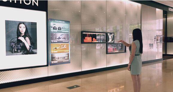 互動櫥窗設備可將圖像投射到商戶臨街玻璃櫥窗的普通玻璃上(所有互動櫥窗設備都放置在店內(nèi),畫面尺寸不限),顧客在店外隔著玻璃點擊圖像畫面,在店內(nèi)的互動櫥窗設備可感應到 ……